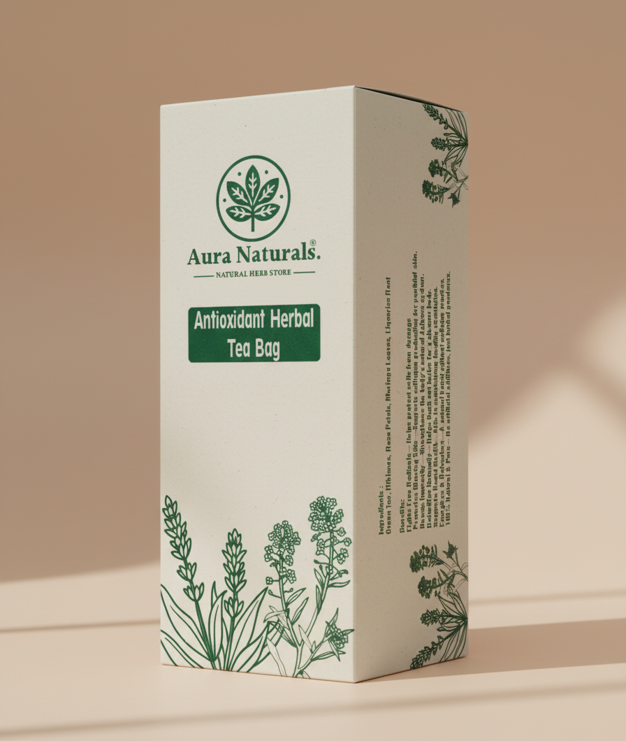 Rejuvenate your body from within with Aura Naturals Antioxidant Herbal Tea Tea Bags — a soothing blend of nature’s most powerful antioxidant-rich herbs. Carefully crafted with rose petals, green tea, hibiscus, moringa leaves, and liquorice root, this aromatic infusion is designed to help your body fight oxidative stress, support skin health, and promote natural energy.